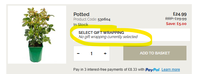 Most potted roses can be sent as a gift. Simply add gift wrapping to the basket and head to checkout [click on the text SELECT GIFT WRAPPING] and then add to the basket.