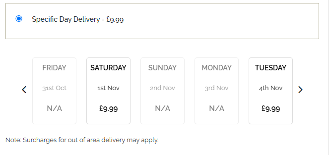 For £9.99, you can select any specific day of your choice [that's available]. Unavailable options will be greyed out.